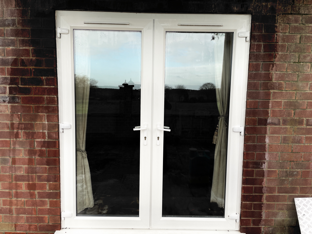 We scrub and wash the glass including the frames with the brush until ALL dirt and dust is loosened and washed away. Depending on the amount of grime on the windows, this may need to be repeated several times until all the dirt has been reomved. Once this is completed a final slow rinse of the glass ensures that nothing but pure, clean water is left behind.